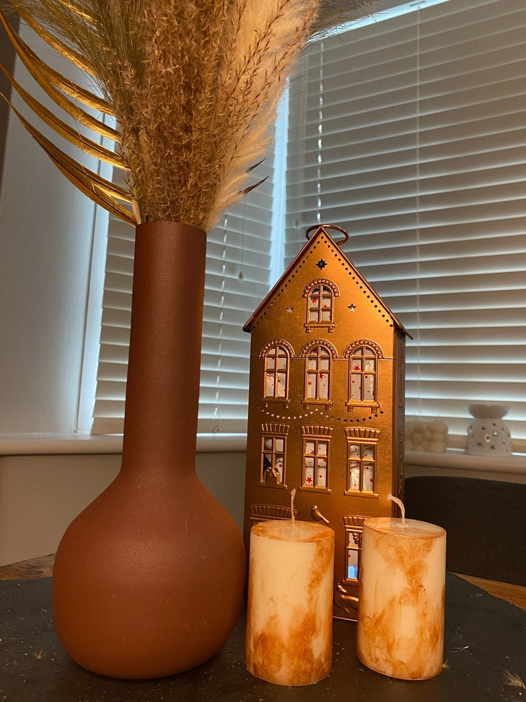 Luxury Bronze Marble Minature Pillars are handmade soy candles, vegan friendly and cruelty free. Each candle is individually hand-poured and hand painted with biodegradable mica powder so not every candle will be the same, making it more personal to you. Scented with a beautiful spring fragrance leaving an aroma without being lit.